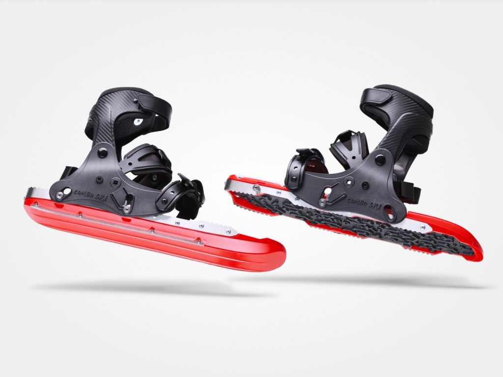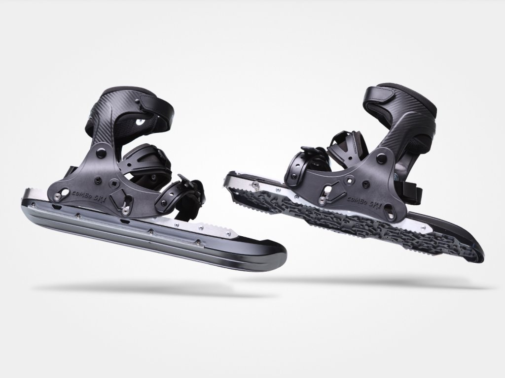 The world’s first combination of snowshoes, mini skis and ice spikes! With Combo Skis you can conquer hikes over ice, wade comfortably through deeper snow, ski down hills and skate on snowy roads. Version in Jet Black.